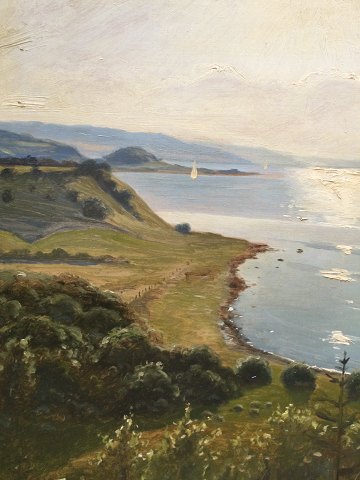 Gunner Bundgaard (1920-2005): Udsigt fra Knudshoved (Raget) ved Mariager 1951 Olie på lærred. Sign.: G. Bundgaard 51 69x51 (79x61) Gunnar Bundgaard