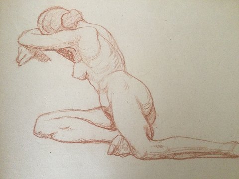Robert Büchtger (1862-1951): Studie af nøgen kvinde. Rødkridt på papir. Sign.: RB Uden ramme. Bladet måler 36x52 20622
