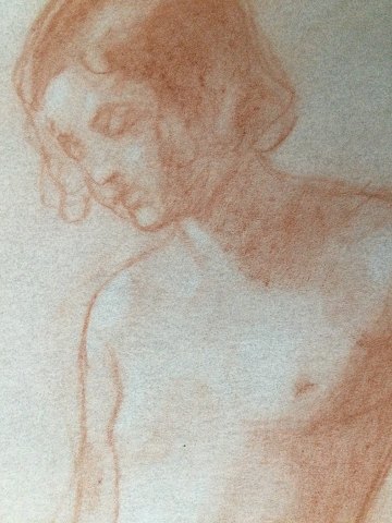 Robert Büchtger (1862-1951): Studie af nøgen pige. Rødkridt på papir. Sign.: RB Uden ramme. Bladet måler 52x39 20622