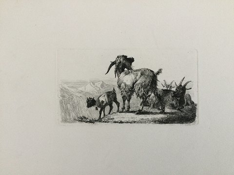 Johannes Vilhelm Zillen (1824-70): En flok geder 1849. Radering på papir. Sign.: Usigneret Uden ramme. Bladet måler 27x36 (trykfladen 8x14½) 21622