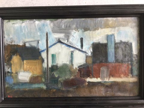 Knud Laursen (1924-2015): Huse. Olie på lærred. Sign.: K.L. 34x58 (44x68) 27622
