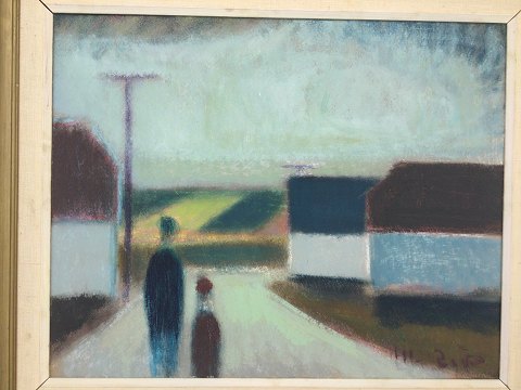 Knud Horup (1926-73): 2 personer i landskab. Olie på lærred. Sign.: Horup 40x50 (52x62)