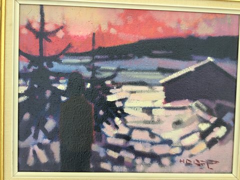 Knud Horup (1926-73): Person i vinterlandskab. Olie på lærred. Sign.: Horup 31x41 (47x57)