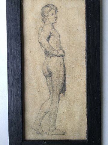 Ubekendt kunstner (19 årh): Nøgen ung mand. Sikkert en akademi tegning. Bly på papir. Usigneret 25x12 (29x16) 36722