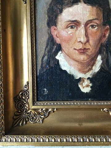Jens Deichmann (1832-97): Dameportræt og Herreportræt. Olie på plader. Begge sign.: D. Bagpå - J. Deichmann Meget smukke rammer. 20x14 (29x23)