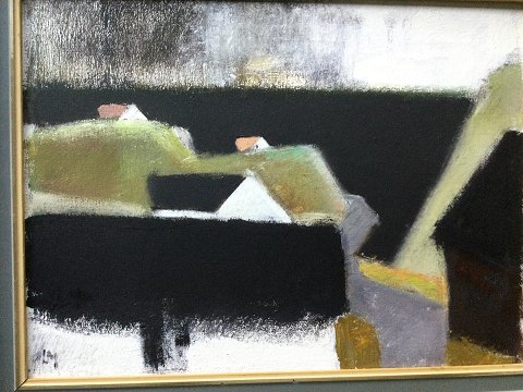 Leon Møller (1919-92): Huse i landskab. Olie på lærred. Sign.: LM. Bagpå - Leon Møller 08793 31x41 (39x49)