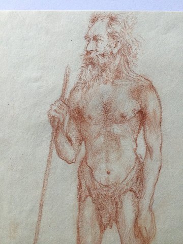 Robert Büchtger (1862-1951): Gammel mand med lændeklæde og stav. Rødkridt på papir. Sign.: R.B. Uden ramme. Bladet måler 22 x 16½ 32322