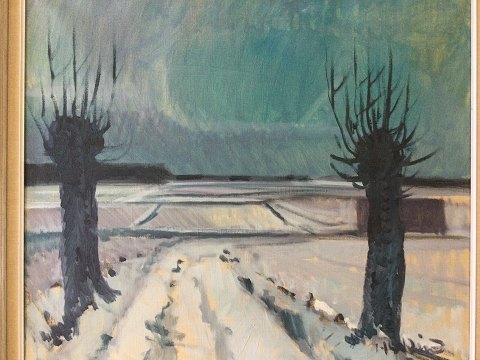 Knud Horup (1926-73): Vinterlandskab med stynede træer. Olie på lærred. Sign.: Horup 60x70 (68x78)