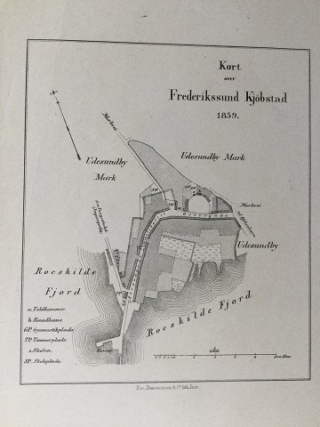 Em. Bærentzen & Co Litgrafiske Institut: Kort over Frederikssund Kjöbstad 1859. Litografi på papir. Jens Peter Trap. Uden ramme 23x14 10623