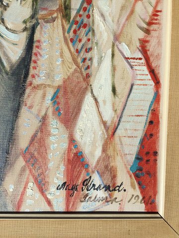 Aage Strand (1910-75): 2 musicerende klovne - Palma 1961. Olie på lærred. Sign.: Aage Strand Palma 1961. 75x55 (86x66) Åge Strand
