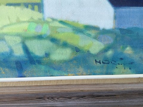 Knud Horup (1926-73): Person i grønt marklandskab. Olie på lærred. Sign.: Horup 60x70 (78x88) 14723