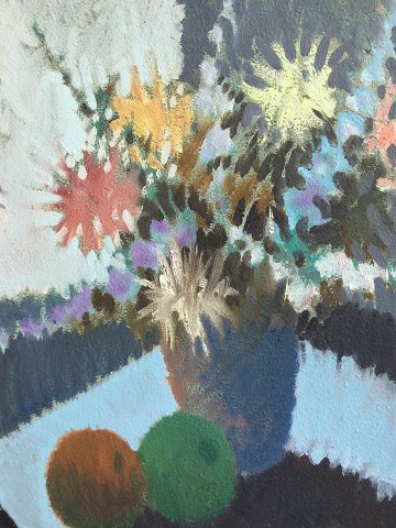 Knud Horup (1926-73): Blomster i vase ved vindue. Olie på lærred. Sign.: Horup 70x60 (86x76) 16923