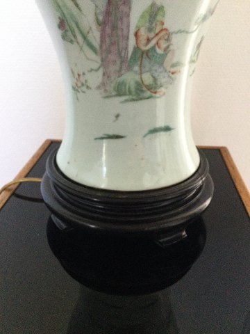 Stor antik, kinesisk porcelæns vase omlavet til bordlampe.