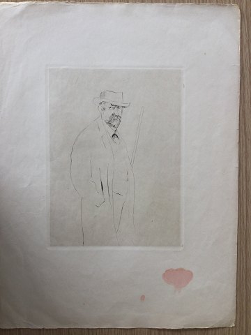 Henrik Lund (1879-1935): Ældre mand. Radering på papir. Usigneret. Rød plet uden for trykfladen. Uden ramme. Trykfladen - 25x19 Arket - 44x33