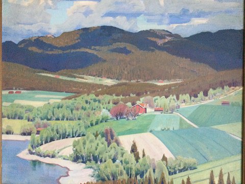 Johannes Kølbel (1883-1983): Vårdag i Maridalen ved Oslo, Norge. Olie på plade. Sign.: Johs. Kölbel 45. Bagpå plade - Vårdag i Maridalen ved Oslo av Johs. Kölbel - 45. 80x100 (96x116)