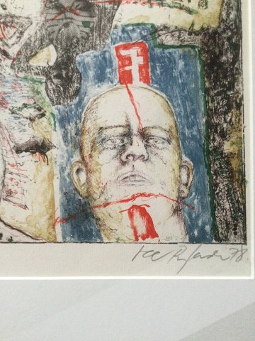 Komposition med ansigter og nøgen kvinde "Stadig står hun som en skygge...." 1978.