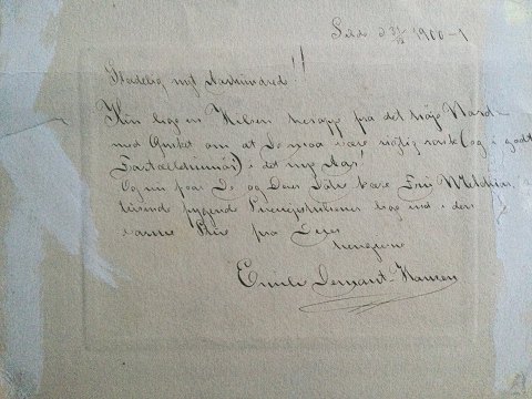 Bagpå brev signeret Emilie Demant Hansen 1900 (blev gift i 1911 med Professor Hatt)