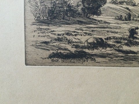 Ernst Zeuthen (1880-1938): Markarbejde. Radering på papir. Sign.: EZ (i trykket) Uden ramme Pladens mål 20x32 - arkets mål 33x44 25323