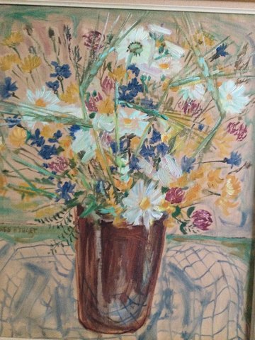 Johannes t' Hart (født 1933): Markblomster i vase. Olie på lærred. Sign.: Johannes t' Hart 68x56 (86x74) 3508