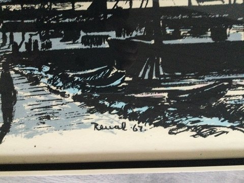 Renal Bache (1926-89): Havneparti 1967. Litografi på papir. Sign.: Renal 67 (i trykket). Indrammet 49x71 6224