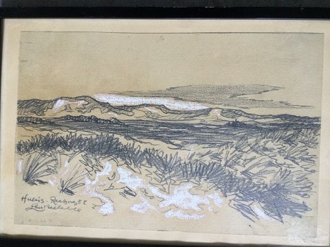 Lars Nielsen (1893-1965): Klitpart fra Hulsig-Råbjerg 1952. Kul og kridt på papir. Sign.: Lars Nielsen 52. Betegnet - Hulsig-Raabjerg 18x28 (23x33) 38520