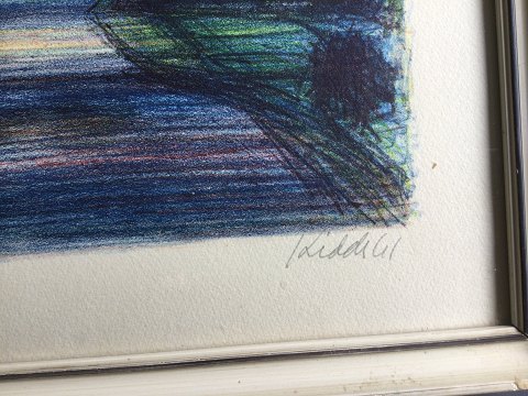 Thormod Kidde (1925-96): Fyns Tv-sender ved Sønder Højrup 1961. Farvelitografi på papir. Sign.: Kidde 61. 36x49 (39x52) 16824