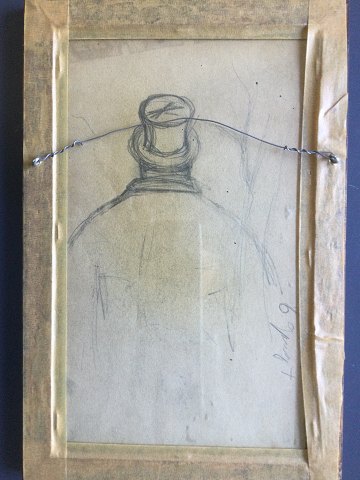 2 tegninger indrammet i samme ramme - for og bag.