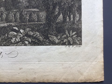 Søren Henrik Petersen (1788-1860): Fredensborg Slot. Kobberstik på papir. Sign.: S.H.P. fecit. Uden ramme. Trykfladen 19x28 - Arket 23x29 4922