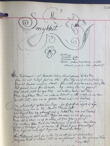 Hans Jørgen Korn (1888-1963): Håndskrevet bog omhandlende kunstnerens tanker og Gudstro med maser af tegninger og vignetter.