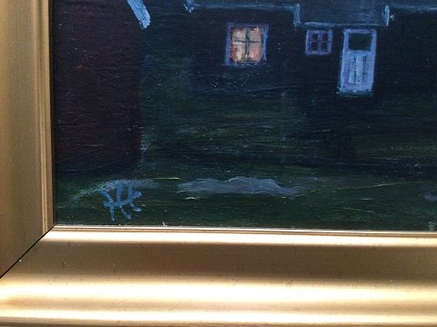 Henning Therkildsen (1918-90): Aftenparti fra Grønlandsk Bygd. Olie på plade. Sign.. Monogram 27x38 (33x44) 24024