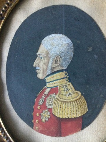Ubekendt kunster (19 årh): Portræt af HM Kong Frederik VI af Danmark. Koloreret litografisk tryk med lidt efterbehandling på pap. Indrammet i smuk gammel original ramme. 61½ x 5½ - (12x10)