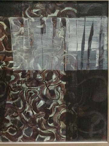 Siri Kollandsrud (født 1963): Komposition 1998. Akryl på lærred. Sign.: Siri Kollandsrud (bagpå lærred) 55x45 (58x48)