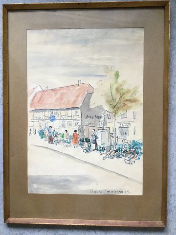 Sigurd Jacobsen (20 årh): Markedsdag i Odense 1959 Akvarel på papir Sign.: Sigurd Jacobsen 1959 57x40 (75x56) 20825