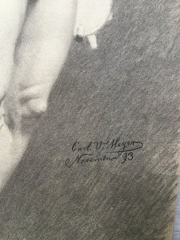 Carl V. Meyer (1870-1938): Nøgen mand - Marmorskulptur - Diskoskasteren 1893. Akademitegning. Kul på papir. Sign.: Carl V. Meyer Dateret - November 93. Uden ramme 67x38 12725