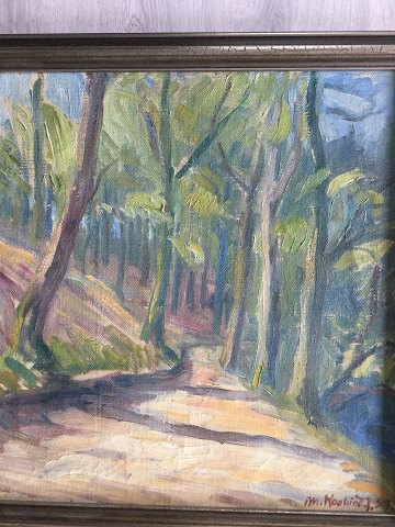 Martin Kaalund-Jørgensen (1889-1952): "Vej gennem skov" 1937. Olie på lærred. Sign.: M- Kaalund J. 37 60x59 (69x68) 21725