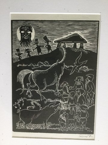 Linoleumssnit på papir.