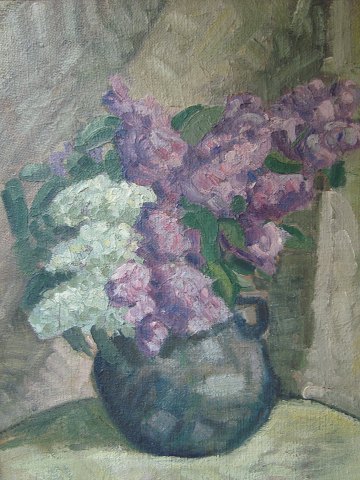 Knud Kristensen (født 1888): "Syrener i vase" 1943 Sign.: K. Kristensen - 43 Bagpå beskrevet på blindramme - K.K. "Syrener" 1944 60x50 (67x57)