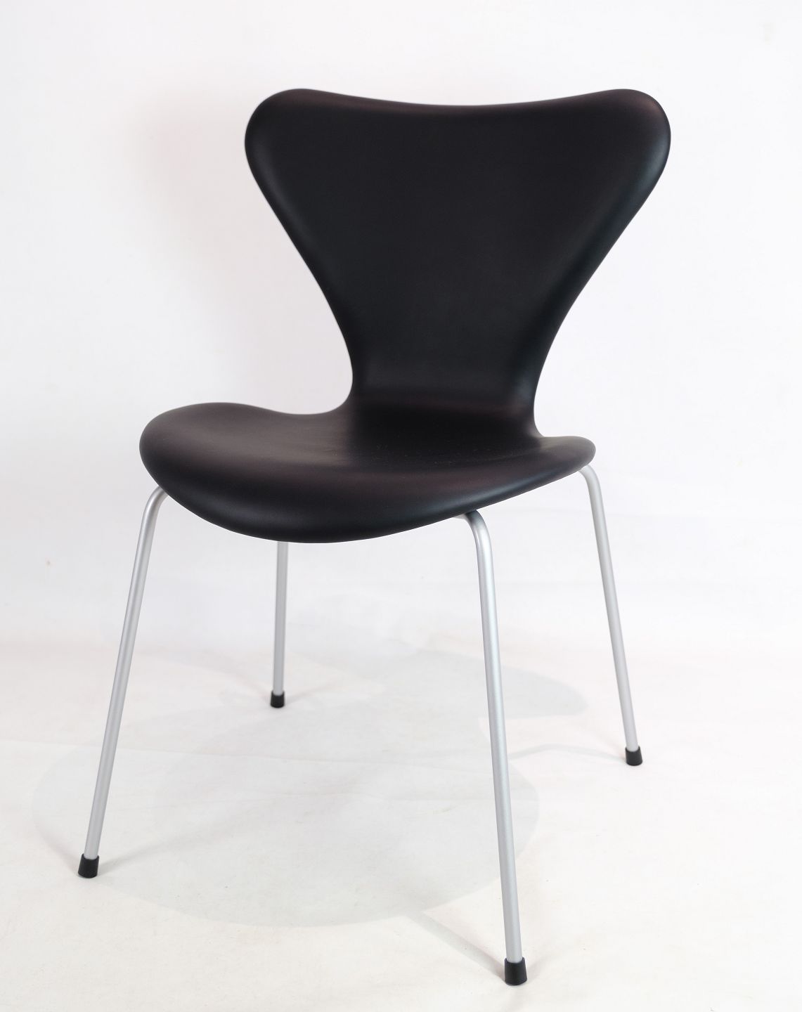 A set of 6 Seven chairs, model 3107, designed by Arne Jacobsen in 1967 and manufactured by Fritz Hansen. The chairs are newly upholstered in black elegance leather.