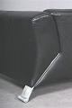 SoldRolf Benz. Three-seater sofa upholstered in black leather with 'Maori' pattern of bone aluminum. Produced by Benz furniture production model 322nd L. 205 cm. 5000 m2 showroom