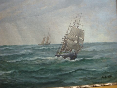 SolgtMarine maleri malet af L.I 1919 i fin kvalitet