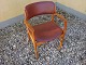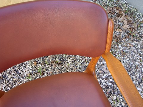 Solgt4 armstole i teaktræ fra 1960 erne designet af Erik Buck med brunt skind i fin stand