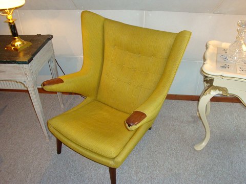 SoldTeddy Bear Chairs + stool designed by Hans Wegner in 1956 with orignalt fabric in good condition 5000 m2 showroom