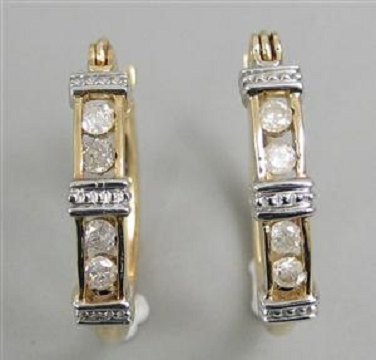 A pair of diamond earrings in 10 carat gold with eight faceted diamonds in total 25 ct.