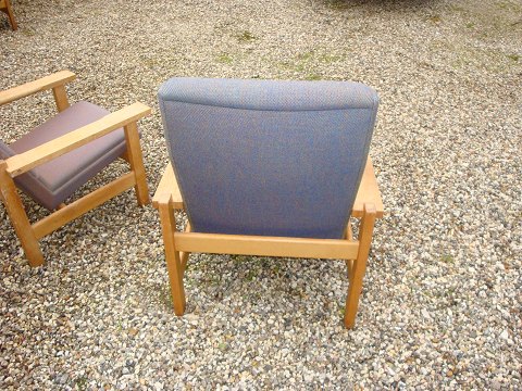 SoldResting chairs in oak with wool designed by Hans Wegner from Getama furniture factory 5000 m2 showroom
