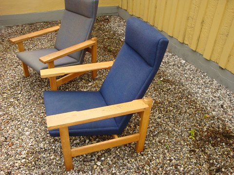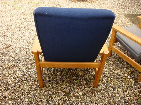 SolgtHvile stole i egetræ med uldstof designet af Hans Wegner fra Getama møbelfabrik 5000 m2 udstilling
