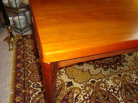 Spisebord i teaktræ med hollandsk udtræk tegnet af Henning Kjærnulf.