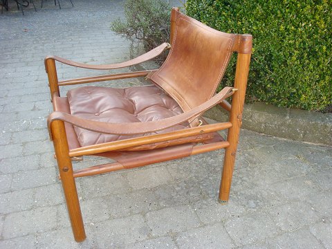 Solgt2 hvilestole tegnet af Arne Norell i brunt kernelæder med patina model safari i fin stand 5000 m2 udstilling