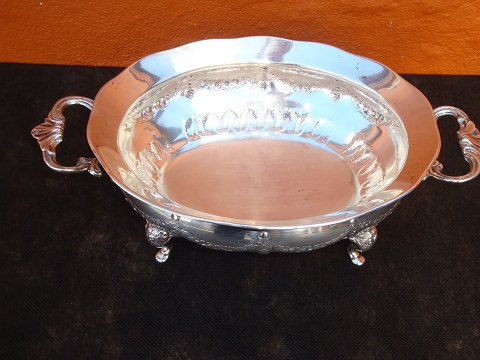 Silver Bowl on feet with chasings.Hallmarked from 1923. Height 9 cm dia. 31 cm. In Perfect condition.