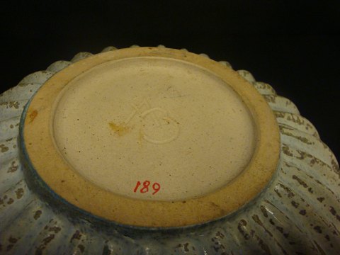 SoldArne Bang bowl made of glazed stoneware with vertical fluting. Ø26cm and Height 11cm. In perfect condition.