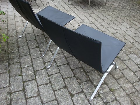 Solgt1 Poul Kjærholm hvilestole pk22 i sort læder. Lavet hos Fritz Hansen.